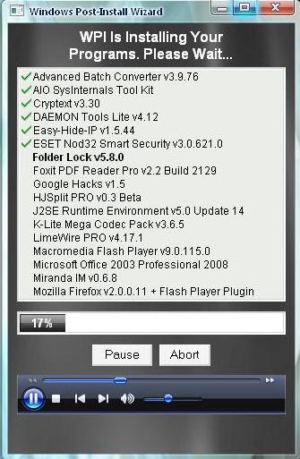 - Windows Post Install menu with most commonly requested programs & songs during installation